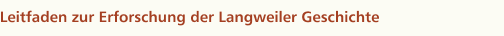 Auf diesen Seiten wird der Versuch unternommen, etwas Licht in das Dunkel der Langweiler Vergangenheit zu bringen. Sicherlich werden einige gewagte Theorien aufgestellt werden. Zunächst möchte ich das Interesse der Langweiler Bürger an der Geschichte ihres Heimatortes wecken. Hier wird versucht besonders unsere jüngeren Mitbewohner zu interessieren und zu einer Mitarbeit bei geschichtlichen Nachforschungen zu bewegen. Es werden zunächst einige Fragen gestellt, die dann in den nächsten Wochen, Monaten und Jahren bearbeitet und vielleicht auch beantwortet werden können. Für Beiträge in Wort, Schrift und Bild ist der Autor jedem dankbar, der zum Gelingen dieses nicht einfachen Vorhabens beiträgt.